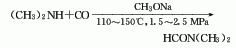 2、二甲胺-一氧化碳法:由二甲胺與一氧化碳在甲醇鈉作用下,直接反應而得。反應條件是1.5-2.5mpa和110-150℃。粗品經(jīng)精餾制得成品。