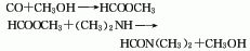3、由一氧化碳和甲醇在高壓和80-100℃溫度下經(jīng)羰基合成得甲酸甲酯,然后再與二甲胺反應生成二甲基甲酰胺,精餾后得到成品。